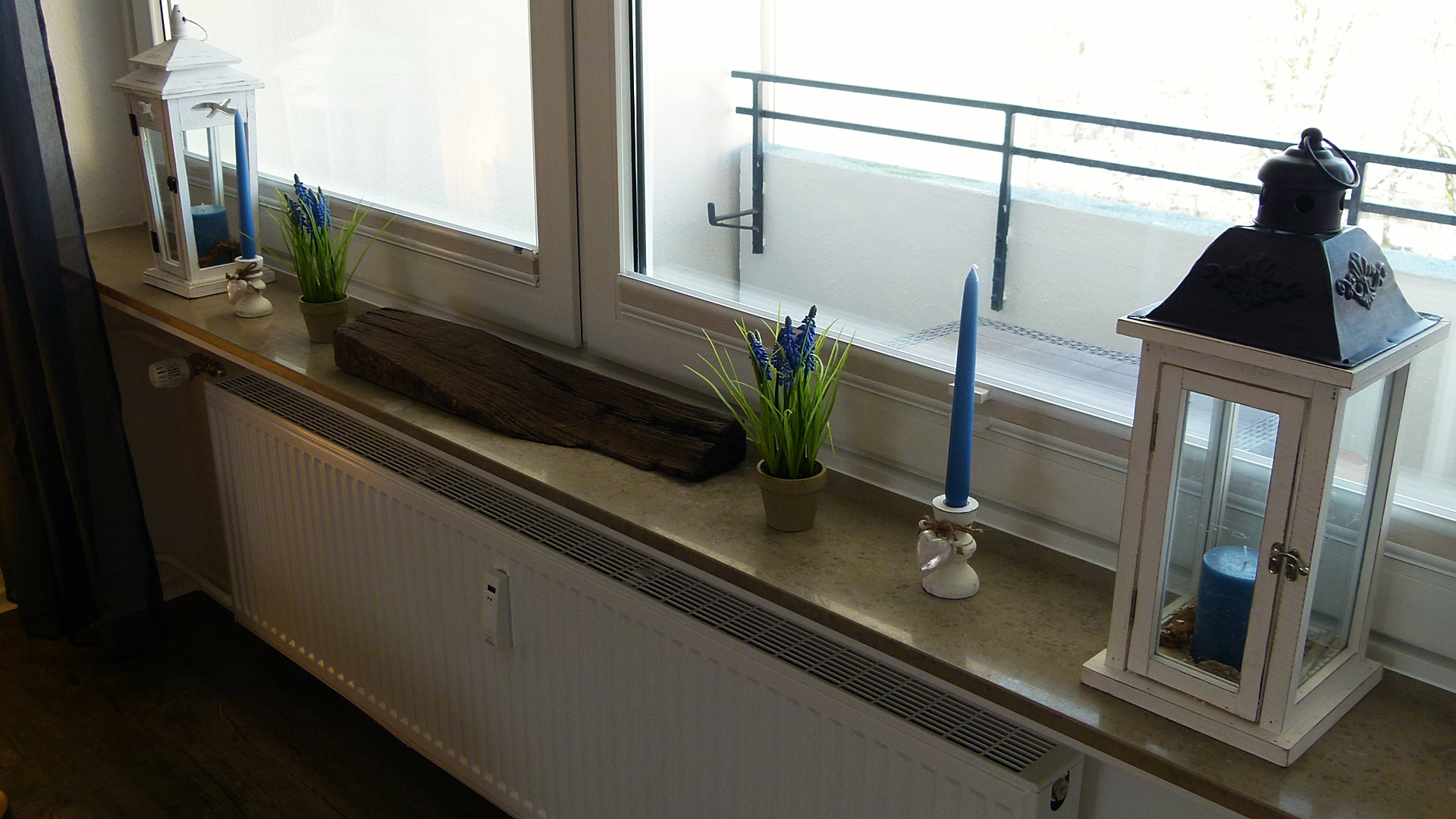 - West/Süd-West Balkon mit Balkonmöbeln in Flechtoptik